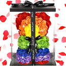 Miś z róż 25 cm czerwony z białym sercem i pudełkiem miś różany LED ciepły biały