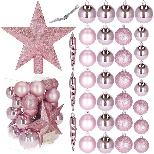 Bombki choinkowe 40 szt. zestaw ozdób świątecznych: bombki, gwiazdy i śnieżynki, bordowo-czerwone