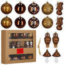 Bombki choinkowe 14 szt. kształtki i kule ozdoby świąteczne zawieszki nietłukące brązowe