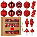 Bombki choinkowe 47 szt. komplet ozdób świątecznych zawieszki nietłukące, czerwony, złoty, biały