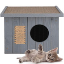 Buda dla kota, psa drewniana, ocieplana 58x49,5 cm z płaskim dachem, szaro-brązowa