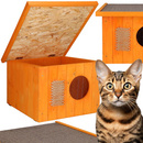 ( ilość produktów: 7 )Buda dla kota, psa drewniana 58x49,5 cm z płaskim dachem, pomarańczowo-brązowa