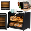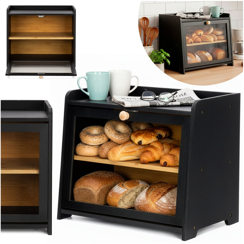 ( ilość produktów: 7 )Czarny chlebak bambusowy dwupoziomowy duży pojemnik na pieczywo, z okienkiem, szafka