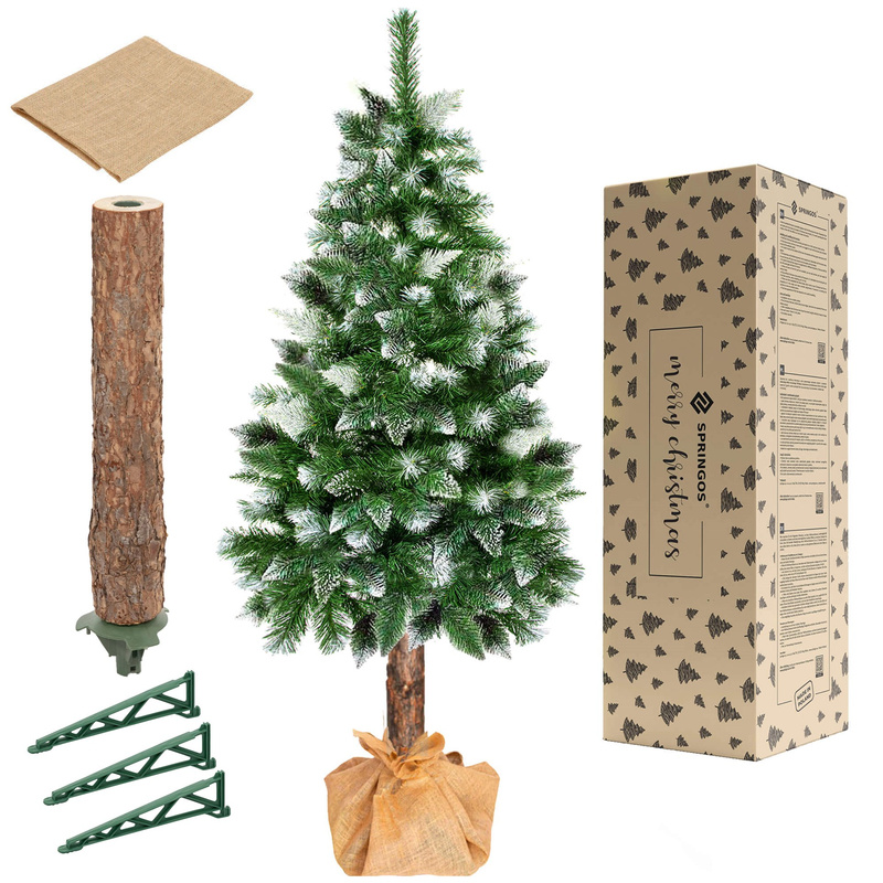 Sztuczna choinka na pniu jak żywa 150 cm świerk naturalny ze stojakiem nowoczesny