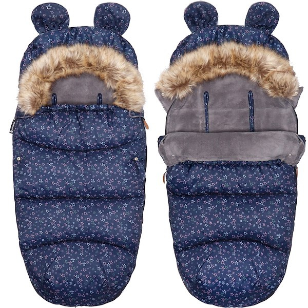 Śpiworek do wózka 4w1, śpiwór z futerkiem do sanek, gondoli 90 cm granatowy zygzak