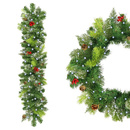 Girlanda choinkowa, świąteczna 110 cm łańcuch z szyszkami i jarzębiną, zielona