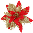 Poinsecja sztuczny kwiat, gwiazda betlejemska czerwono-złota z brokatem