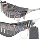 Hamak dwuosobowy 200x150cm bujak ogrodowy z frędzlami 200kg szaro-kremowy