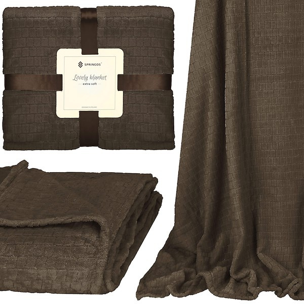 Narzuta na łóżko, koc 170x210 cm ciemnobrązowy, dwustronny, tłoczony pled na kanapę