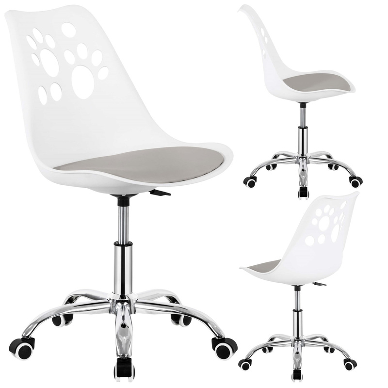 Krzesło obrotowe, ergonomiczny fotel na kółkach dla dzieci, ucznia biało-szare