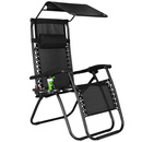 Leżak ogrodowy grawitacyjny z daszkiem i półką na napoje ergonomiczny czarny
