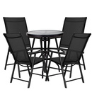Meble ogrodowe, komplet na balkon dla 4 osób: metalowe 4 krzesła i stół z szkła hartowanego, czarny