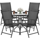 Meble ogrodowe, komplet na balkon dla 4 osób: metalowe 4 krzesła i stół z szkła hartowanego czarno-szary