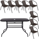 Zestaw mebli ogrodowych stół prostokątny i 8 krzeseł metalowych komplet czarno-brązowy