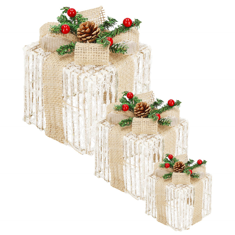 Oświetlenie świąteczne LED prezenty dekoracja świąteczna biały ciepły zestaw 3 szt.