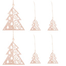 Ozdoba choinkowa 7cm drewniana, świąteczna zawieszka choinka zestaw 6 szt.