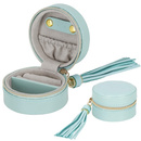 ( ilość produktów: 489 )Szkatułka na biżuterię okrągła 8x5 cm miętowy kuferek z przegródkami ekoskóra