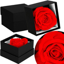 Miś z róż 25 cm czerwony z czarną kokardką i pudełkiem miś różany LED zimny biały