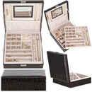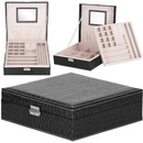 Szkatułka na biżuterię ekoskóra 26x26x8,5 cm czarny kuferek z przegródkam
