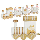 Drewniana kolejka z wagonikami, dekoracja na święta, wystrój wnętrz biało-złoty