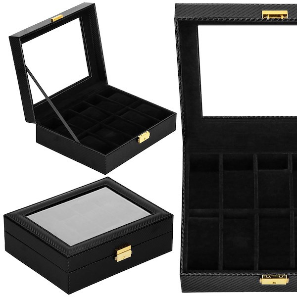 Szkatułka na zegarki 30x20x8 cm czarno-kremowy kuferek z 12 przegródkami ekoskóra