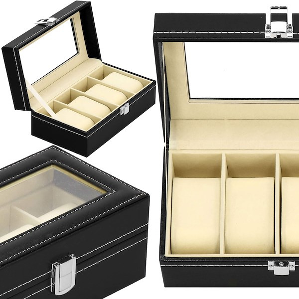 Szkatułka na zegarki 30x20x8cm czarno-kremowy organizer z przegródkami ekoskóra