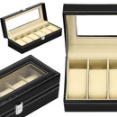 Szkatułka na zegarki 30x11x8 cm czarno-kremowy kuferek z przegródkami ekoskóra