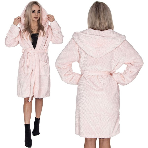 Szlafrok damski z kapturem i paskiem rozm. L/XL polarowy beżowy, królik