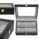 Szkatułka na zegarki 30x20x8 cm czarno-kremowy kuferek z 12 przegródkami ekoskóra