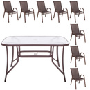 Zestaw mebli ogrodowych stół ze szkłem hartowanym, 8 krzeseł komplet na taras brązowy