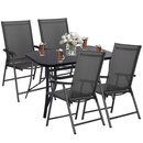 Meble ogrodowe komplet stół ze szkłem hartowanym, 4 krzesła zestaw dla 4 osób czarny