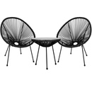 Meble ogrodowe rattanowe dla 2 osób stół ze szkłem hartowanym 2 fotele ażurowe czarne