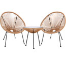 Meble ogrodowe rattanowe dla 2 osób stół ze szkłem hartowanym 2 fotele ażurowe beżowe
