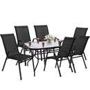 Zestaw mebli ogrodowych stół ze szkłem hartowanym, 6 krzeseł na taras czarny