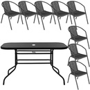 Zestaw mebli ogrodowych stół prostokątny i 8 krzeseł metalowych komplet czarno-szary