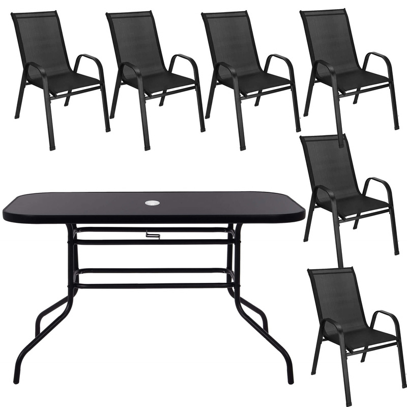 ( ilość produktów: 2522 )Zestaw mebli ogrodowych stół ze szkłem hartowanym, 6 krzeseł na taras czarny