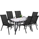 Meble ogrodowe: zestaw ogrodowy dla 6 osób metal i szkło hartowane, czarne