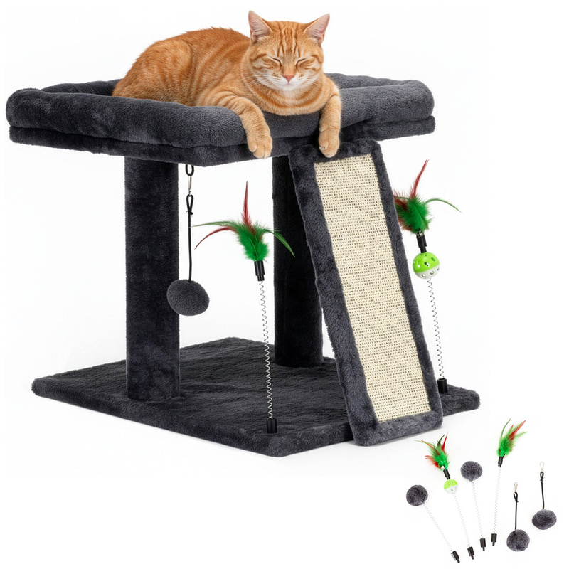 Drapak dla kota dwupoziomowy z sizalem, legowisko, grafitowy