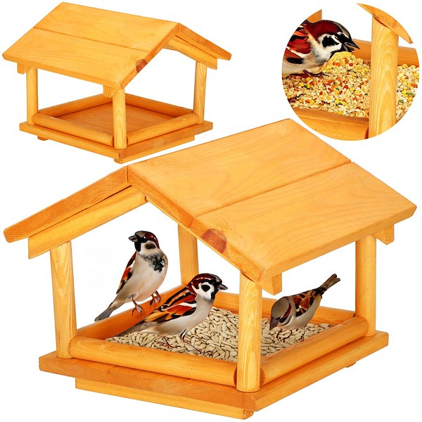 Karmnik dla ptaków drewniany rozm. M domek budka dla sikorek 25x31x30,5 cm jasnobrązowa