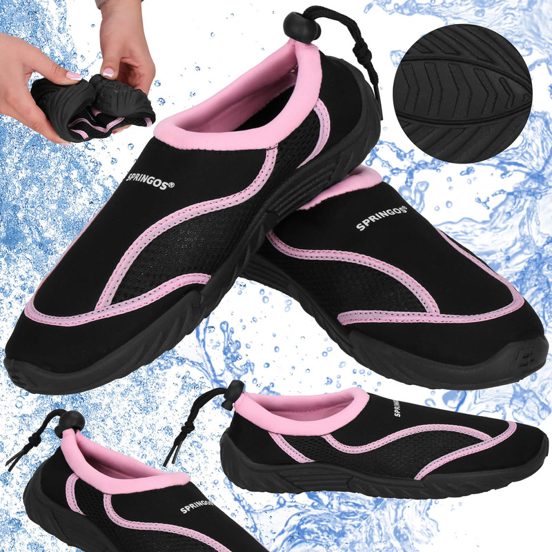 Buty plażowe damskie rozm. 36 szybkoschnące buty do wody i sportów wodnych czarno-różowe