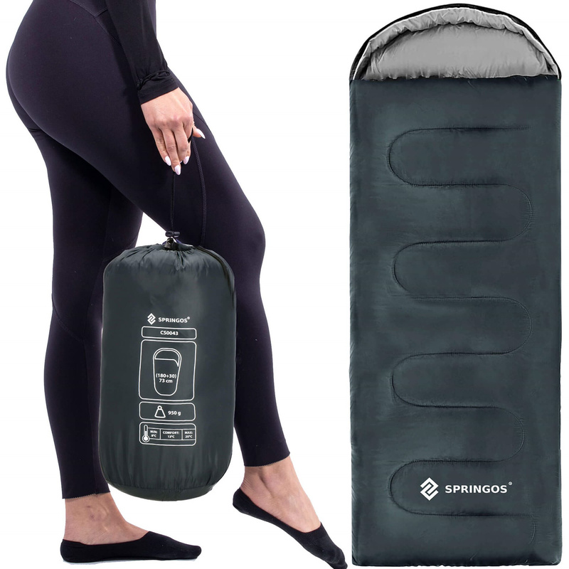 Śpiwór turystyczny z kapturem 210x73 cm mumia lekki śpiwór kempingowy szary