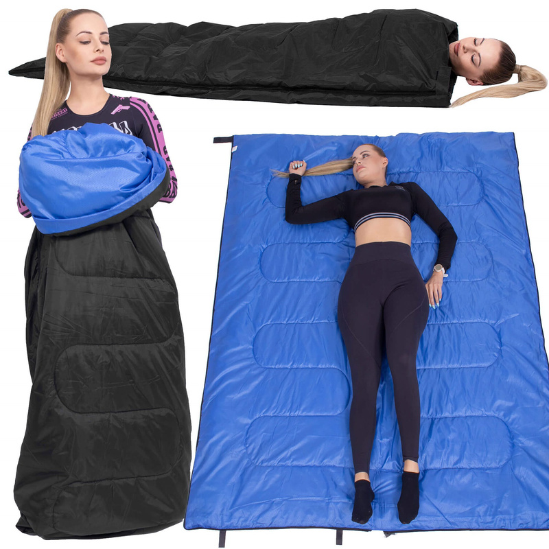 ( ilość produktów: 2521 )Śpiwór turystyczny 190x73 cm lekki śpiwór kempingowy czarno-niebieski