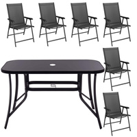 Zestaw ogrodowy marki Springos, składający się ze stołu i 8 krzeseł pomoże ci odpowiednio wyposażyć ogród i taras. Połączenie hartowanego szkła z minimalistycznym wyglądem sprawia, że komplet będzie wyglądał świetnie jako element istniejącej już aranżacji. To właśnie dzięki niemu będziesz mogła wygodnie spędzać czas na świeżym powietrzu z najbliższymi. Blat stołu posiada zaokrąglone ranty, aby zwiększyć bezpieczeństwo w trakcie użytkowania. Dodatkowo na środku blatu znajduje się otwór, który pozwala na montaż w jego wnętrzu parasola. Dzięki temu rodzina i znajomi ukryją się przed mocnym słońcem w cieniu parasola.