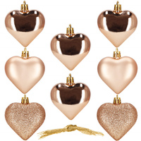Bombki choinkowe 7 cm ozdoby świąteczne 8 szt. nietłukące serca, rose gold