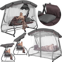 Huśtawka ogrodowa, tarasowa z daszkiem i moskitierą, 3-osobowa z podstawkami na napoje brązowo-szara