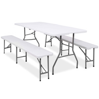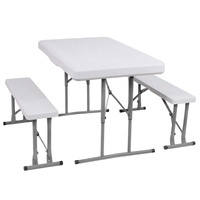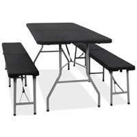 Komplet mebli bankietowych, cateringowych składany stolik ogrodowy 2 ławki, czarno-szary