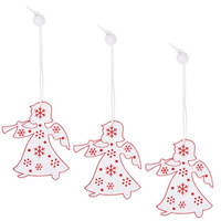 Drewniany zestaw 3 szt. aniołków w formie zawieszki w białym kolorze świetnie będzie wyglądać zarówno, jako dodatek do większego prezentu jak i na bożonarodzeniowej choince. Nietłukący się materiał zwiększa bezpieczeństwo, dzięki temu pozwoli na tworzenie wspólnych dekoracji z najmłodszymi domownikami. W zestawie znajdują się gratisowe tasiemki, które pozwolą na zwinne oraz nieskomplikowane powieszenie zawieszek w wybranym przez siebie miejscu. Te piękne 6,5cm aniołki-zawieszki świąteczne sprawdzą się w charakterze ozdoby choinkowej, jak również dekoracja okien.