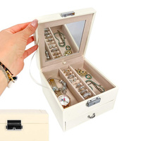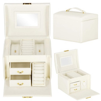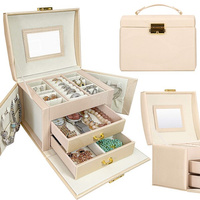 Szkatułka na biżuterię ekoskóra 17,5x12x13,5 cm kremowy kuferek z przegródkami