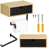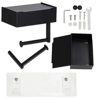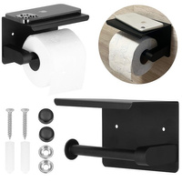 Uchwyt na papier toaletowy samoprzylepne akcesorium łazienkowe stalowe z półką czarne