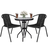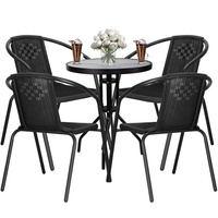 Zestaw mebli ogrodowych stół okrągły i 4 fotele metalowe czarne komplet ogrodowy dla 4 osób